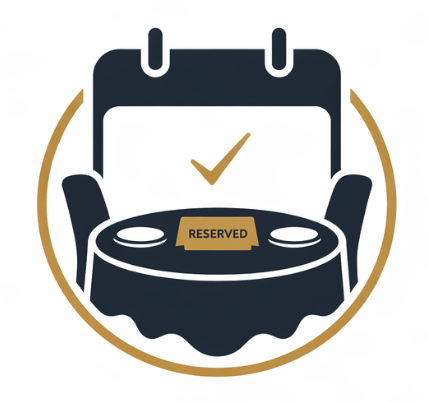 Reserve A Table accepts reservations via GetFork. Tables available this week in 30-minute slots for parties of 1–10. Book instantly — no phone call required.
